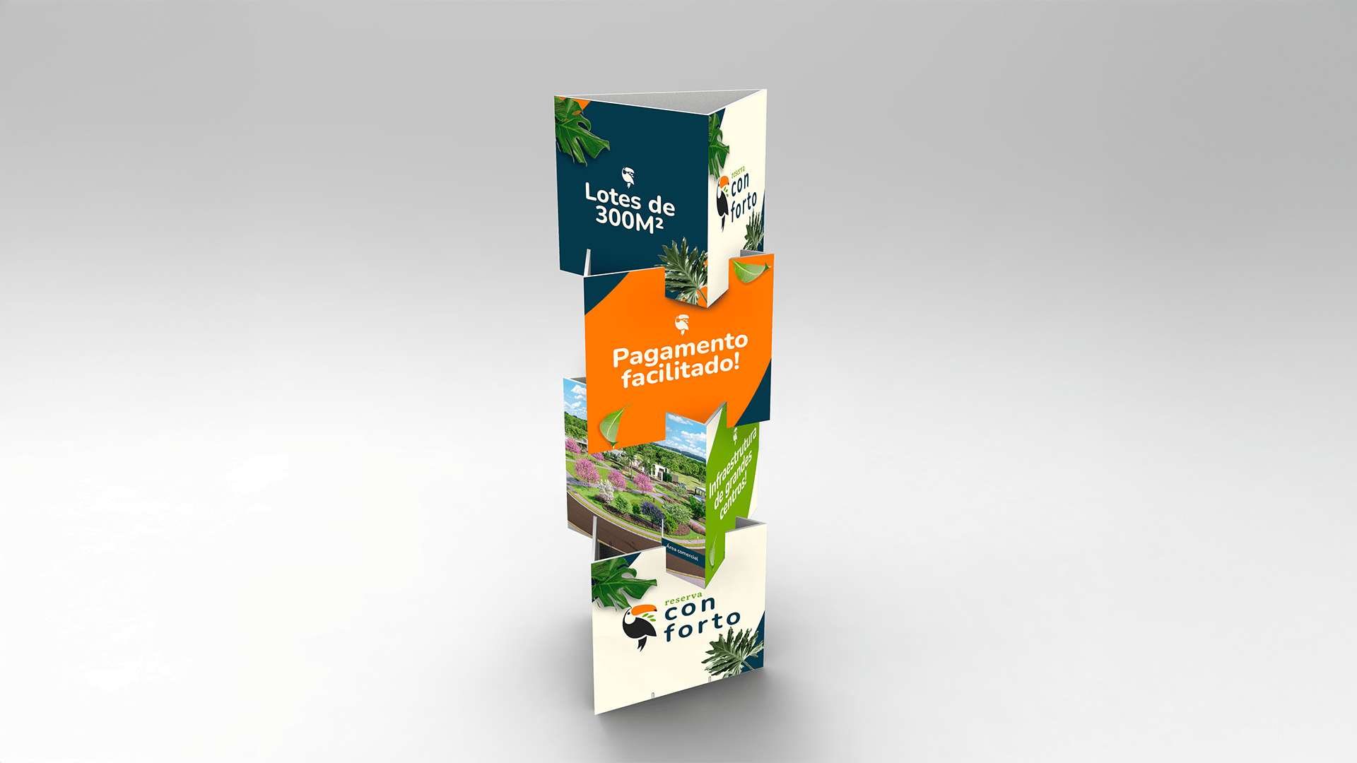 O desafio principal foi criar uma marca que representasse o pioneirismo do primeiro loteamento aberto planejado de Nova Crixás-GO e, ao mesmo tempo, se conectasse com a identidade local. A escolha do tucano como símbolo estratégico trouxe essa proximidade. Por ser uma ave presente no cotidiano da região que carrega familiaridade e pertencimento.