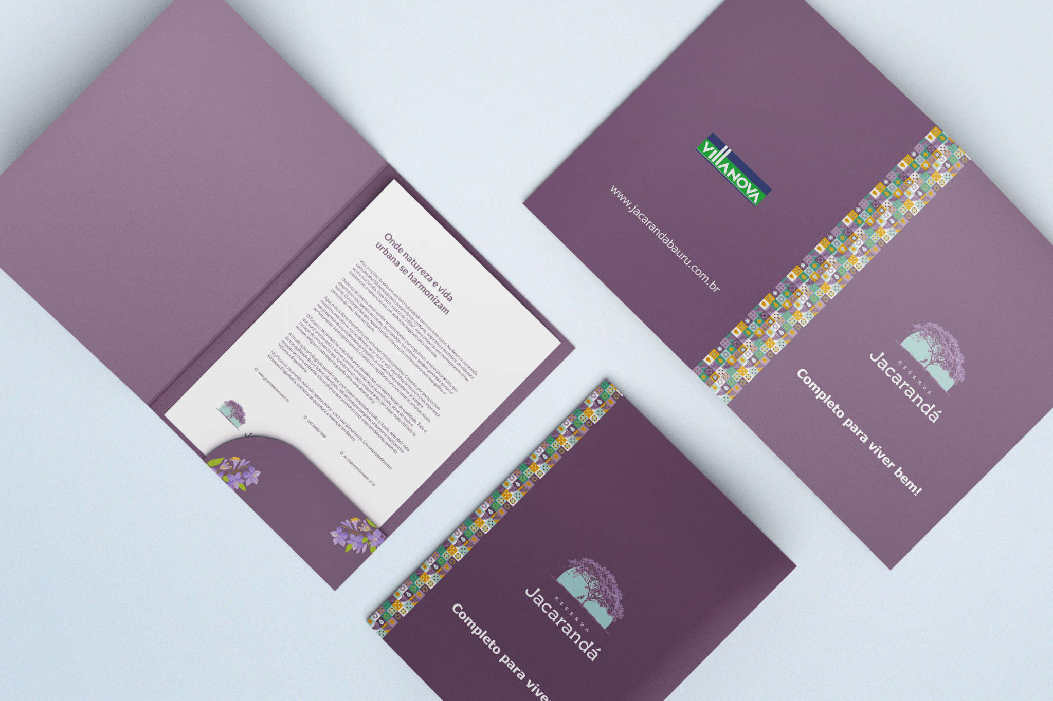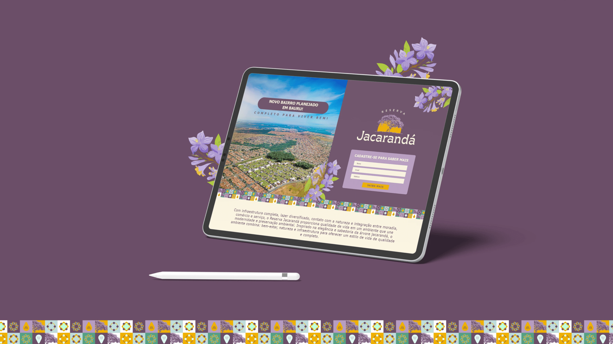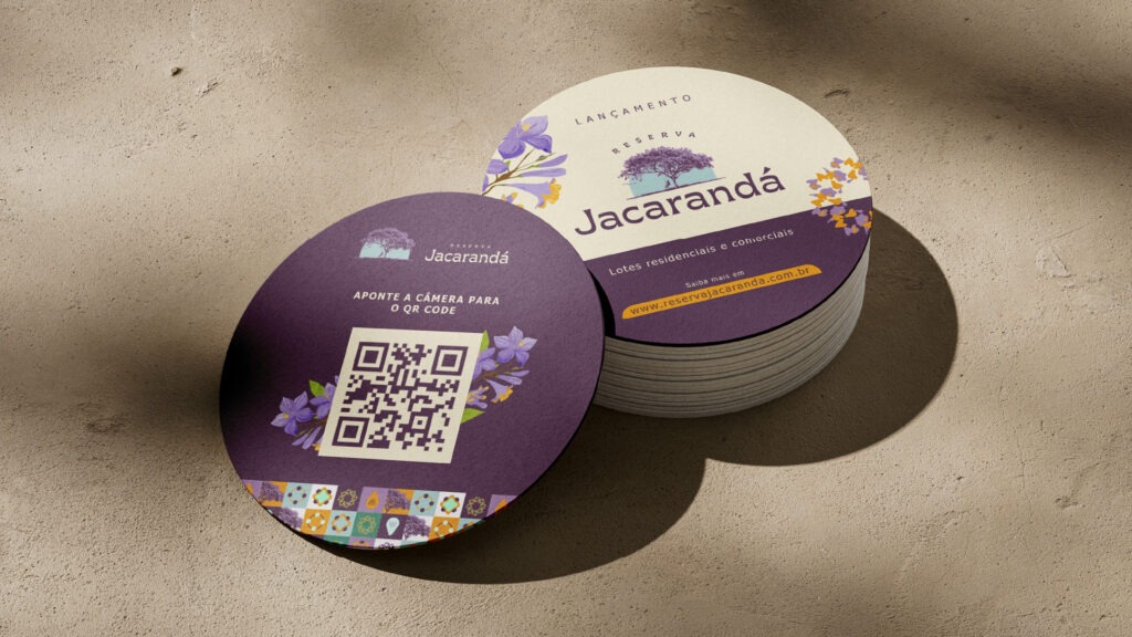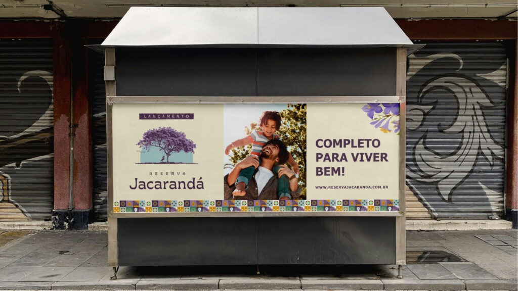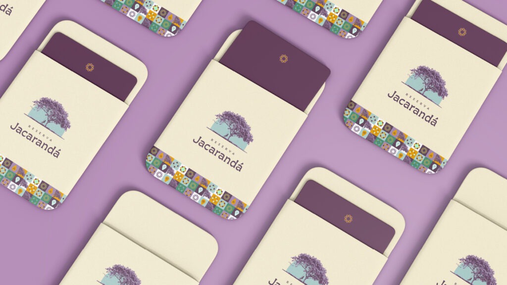 A árvore, elemento central da identidade visual, reforça a ideia de sabedoria, estabilidade e crescimento, conceitos que estão conectados com a filosofia do Reserva Jacarandá. Com uma estrutura orgânica e ramificada, ela simboliza o desenvolvimento de uma comunidade viva e em constante evolução, conectando as residências, o comércio e o lazer de forma fluida e integrada.