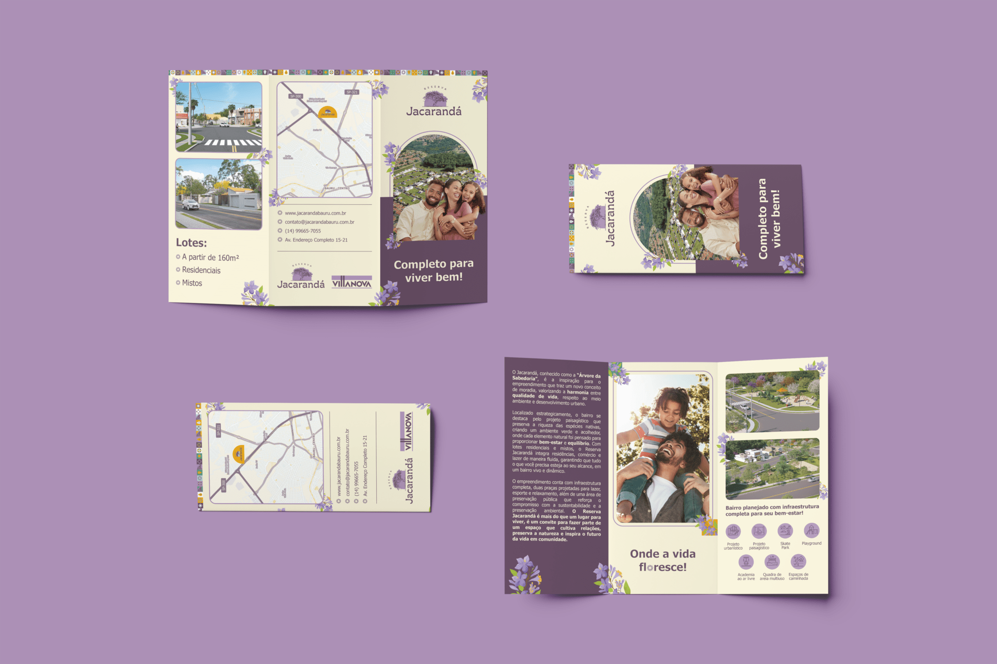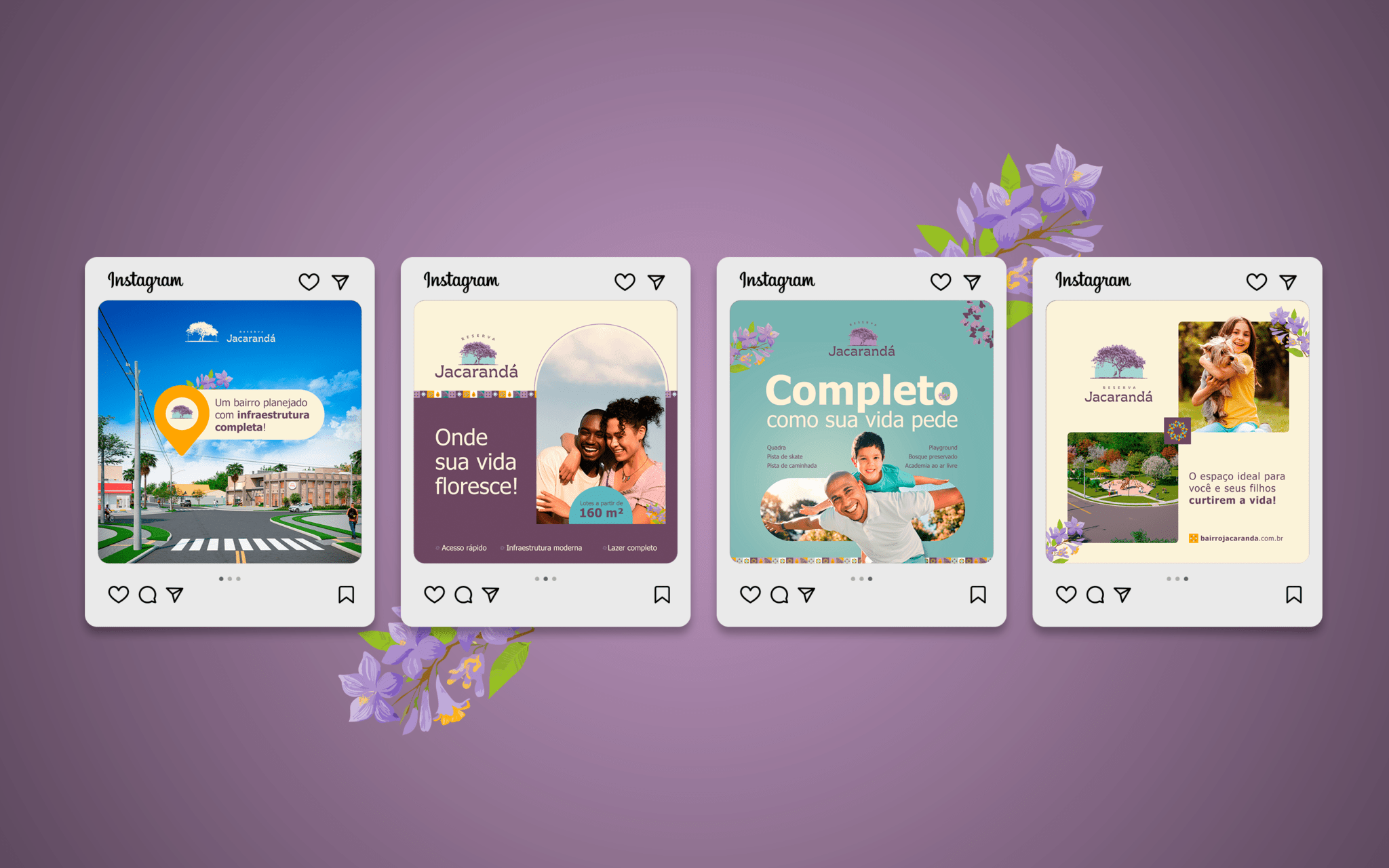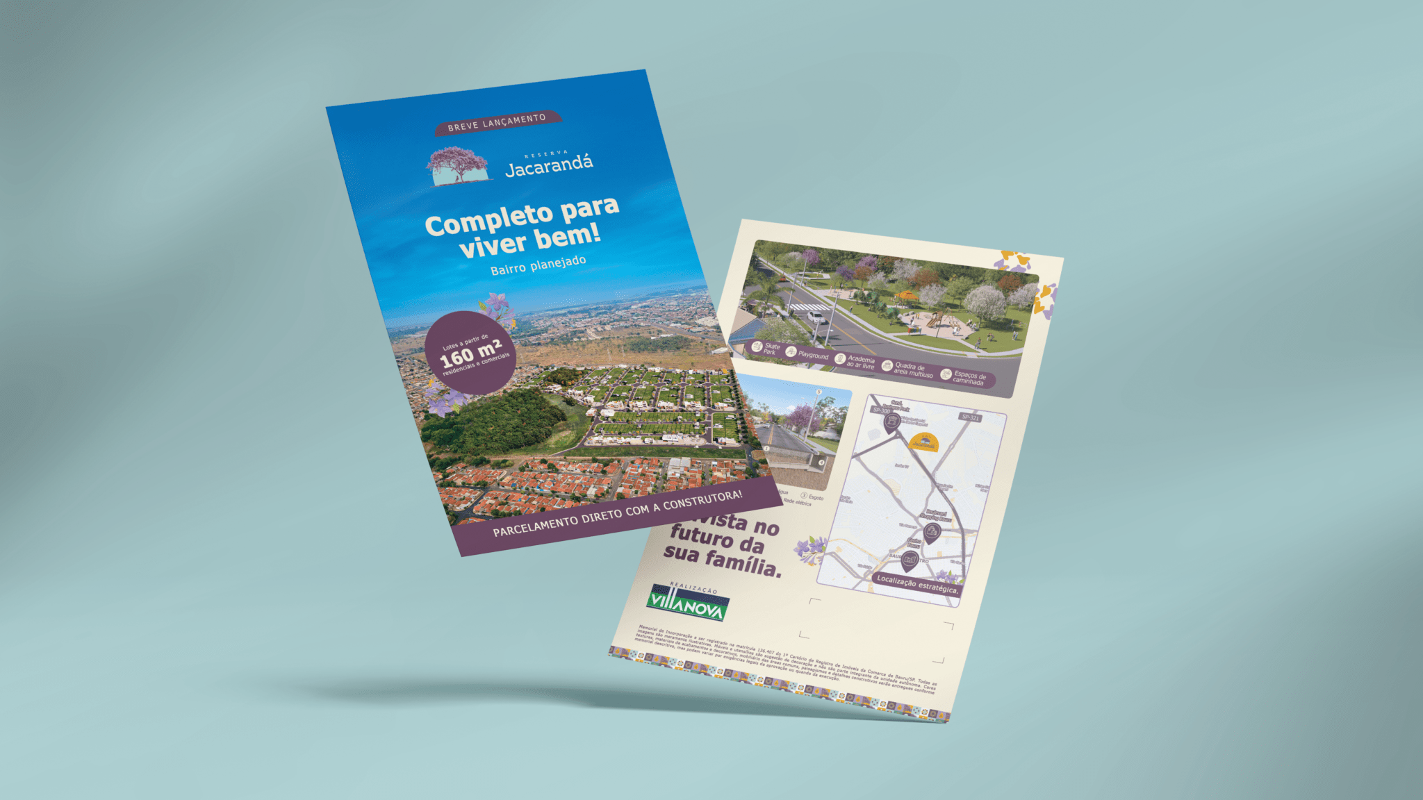 A árvore, elemento central da identidade visual, reforça a ideia de sabedoria, estabilidade e crescimento, conceitos que estão conectados com a filosofia do Reserva Jacarandá. Com uma estrutura orgânica e ramificada, ela simboliza o desenvolvimento de uma comunidade viva e em constante evolução, conectando as residências, o comércio e o lazer de forma fluida e integrada.